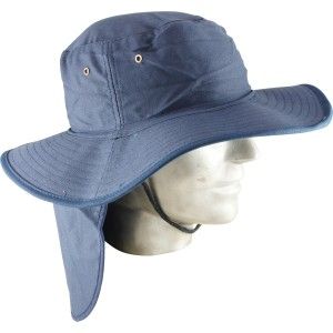 Hat Cotton Blue Wide Brim with Neck Flap Size L/XL