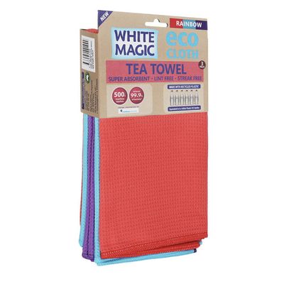 White Magic 3 pack Tea Towel Absorbent Cloths are the ultimate set of kitchen essentials for efficient drying and cleaning. This high-quality multi purpose tea towel set offers superior absorbency, durability, and versatility, making it a must have for any kitchen.