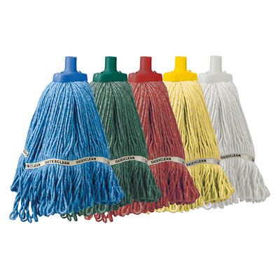 Premium textile blend yarn; Ideal for all heavy duty hospital mopping; Looped ends prevent tangling and linting; Angled tail banding improves wringing.