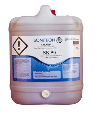 Sonitron SK50 Prespray Wool Safe is a non solvent emulsifier used for the removal of oil and grease. It is especially useful on greasy polypropylene carpets and applicable to all synthetic carpets, including 5th generation protected nylon.