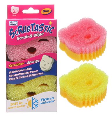 The White Magic Scrubtastic Scrub & Wipe Sponge Duo is a cleaning innovation that combines the power of a scrubber with the softness of a sponge. Designed for ultimate versatility, this dual-action tool is perfect for tackling tough messes and delicate cleaning jobs with ease.