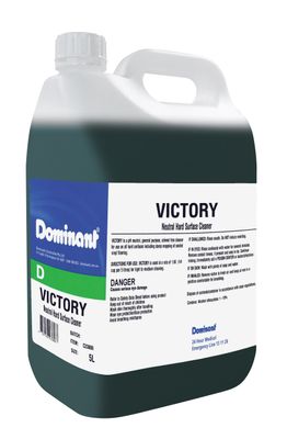 Dominant Victory is a pH neutral, general purpose, solvent free cleaner for use on all hard surfaces including damp mopping of sealed vinyl flooring.
