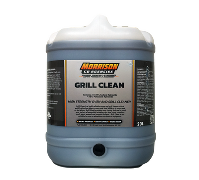 Grill Clean is a highly alkaline oven and grill cleaner which quickly dissolves heavy grease and food build up in ovens and on hot plates. Grill Clean provides easy rinsing and can be used on a variety of materials including cast iron, steel, stainless steel, glass, enamel and ceramic surfaces. Grill Clean is not suitable for use on aluminium surfaces or equipment.