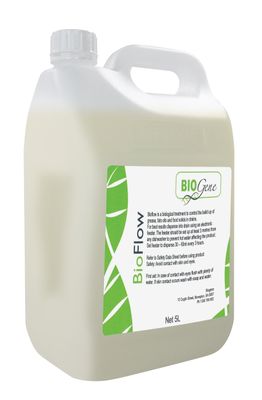 Bioflow is a straw coloured liquid with a neutral odour. It is a ready to use product containing bacterial spores and detergents for the biological treatment of grease traps and drains.