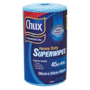 Tough grease and grime is no match for Chux® Heavy Duty Superwipes®; 20% more absorbent; Each cloth has a thicker and heavier weave. Chux® Heavy Duty Superwipes® are packed in ready to use 45m rolls with perforated 56cm x 30cm sheets for ease & convenience. Colour coded blue for use in any general cleaning or service area.