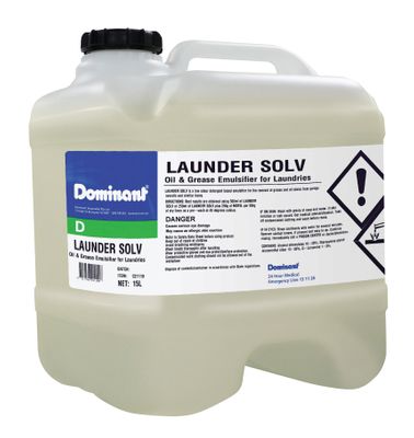 Solvent based liquid containing orange oil solvent and detergents. Used in the prewash for washing linen with heavy oil deposits such as table linen and massage towels.